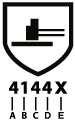 Etiquetas de poliamida impresas en impresoras térmicas que detallan las siguientes denominaciones, logo y marca de la empresa, pictograma de desempeño, artículo, número de lote, talle del guante y logos del organismo certificador.